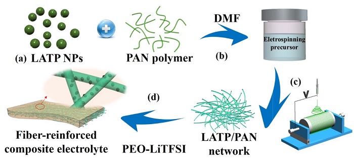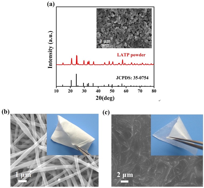 (c) 静电纺丝法得到的 LATP/PAN 网络