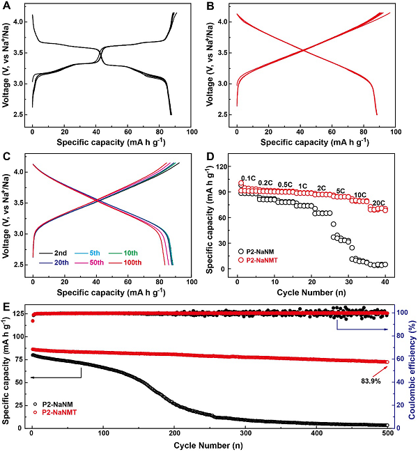 (D)P2-NaNM和P2-NaNMT的倍率性能对比图。