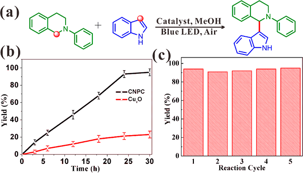 该工作以苯并咪唑修饰的HKUST-1为前驱体,采用原位合成出了具有核壳结构氮掺杂的碳包覆的氧化亚铜立方八面体颗粒。由于其独特的结构和组成,该材料表现出优异的光催化性能。为设计具有高效光催化活性的催化剂提供了新的思路。