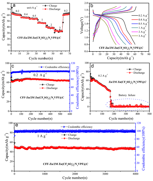 a)CFF-Zn//N3VPF@C电池的倍率容量性能;