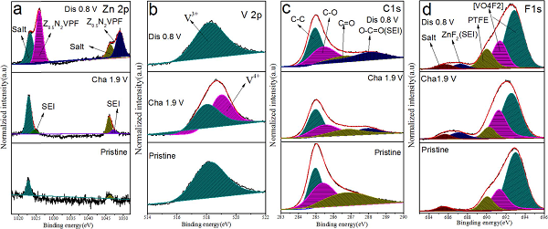 近日,华中HTH官网地址 大学蒋凯和王康丽教授(共同通讯作者),成功开发了Na3V2(PO4)2F3正极材料(N3VPF@C),同时通过修饰金属Zn负极(CFF-Zn),组装了CFF-Zn// N3VPF@C水系锌离子电池。该电池体系具有1.62V电压,97.5Wh/kg的能量密度和长达4000圈的循环寿命(95%容量保持率)。作者通过非原位XPS、XRD和SEM mapping等表征了电池的机理。值得注意的是,基于CFF-Zn//N3VPF@C的软包电池同样具有良好的循环性能。相关成果以题为“A long-life aqueous Zn-ion battery based on Na3V2(PO4)2F3 cathode”发表在了Energy Storage Materials 上。