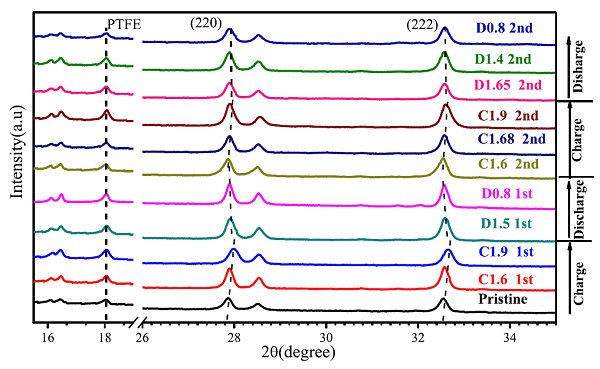 图5 N3VPF@C电极不同充放电状态下的结构变化