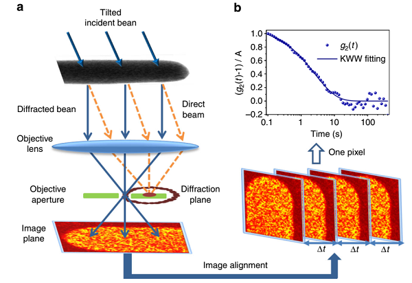 过冷液体在原子排布涨落的动力学过程中表现出空间不均匀性。根据多数微观理论的观点,过冷液态经历玻璃转变时,弛豫时间和弛豫较慢区域的特征长度增加。对比而言,经典形核理论认为,液相在界面处会率先发生结晶转变。尺度动力学不均匀的长度尺度和时间尺度对于玻璃转变及液相结晶的形核生长问题至关重要。电子相关显微镜(ECM)可用于纳米尺度空间分辨率的液相动力学测量,它使用时间分辨的相干电子衍射来研究纳米尺度的液相动力学。