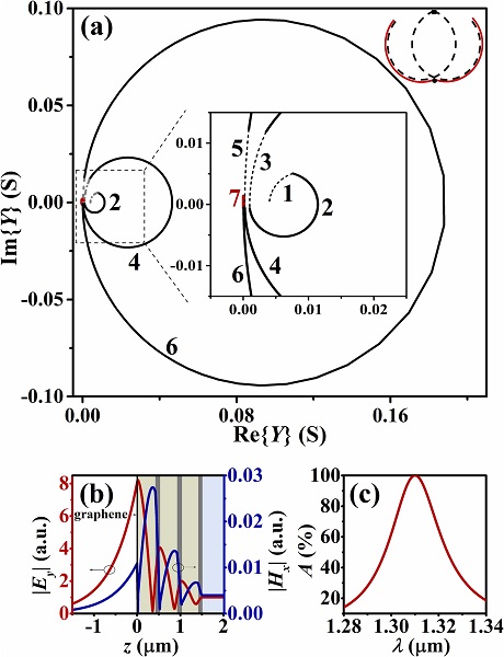 该设计从表面波的光学基础、传输矩阵计算、导纳轨迹控制、器件吸收性能到扩展器件设计逐渐深入。使用导纳图/匹配以及虚拟腔和势垒模型揭示BSW的物理和激发。BSW系统具有高度可调性,可轻易控制石墨烯吸收率及B-SGPA工作波长。此外,通过改变导纳轨迹并调整器件参数,该研究提出B-SGPA的导纳设计方案,能够更加灵活地实现导纳匹配,从而可以采用非周期系统激发一般的表面电磁波,并实现石墨烯完美吸收。这项研究提供了一个全新的石墨烯吸收增强方案,通过使用简单的薄膜系统,而不是金属或复杂的纳米结构系统,实现极高的光学性能。基于表面电磁波的石墨烯完美吸收器不仅有助于降低制造成本,且拥有与现有光电系统更好的兼容性;B-SGPA的窄带和高吸收响应也可应用于高效的光电转换器件和超灵敏传感器中。