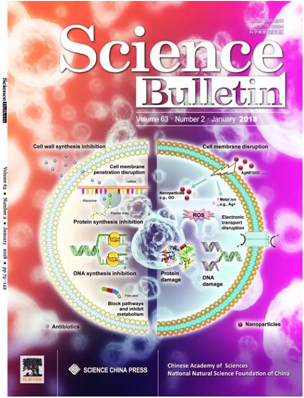本文不仅从大小、形状及表面基团等方面总结了GO杀菌的构效关系,同时总结概括了GO在医疗器械、食品、环境和农业等方面的抗菌产品及应用。重点关注了GO应用于医疗领域的安全性问题,文章认为GO直接入血仍存在较大风险,因此在医疗器械的抗菌涂层及修饰应用中应重点关注GO泄露、释放入血等问题。最后,从GO与细菌界面相互作用的理解、GO与其他抗生素的协同抗菌效应及固定化GO抗菌产品的应用三个方面探讨了GO在未来作为新型纳米抗菌剂的实际应用过程中所面临的机遇和挑战。该成果在Science Bulletin 2018年第2期作为封面文章报道。