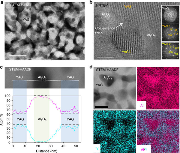 a)YAG-Al2O3陶瓷的STEM-HAADF图像
