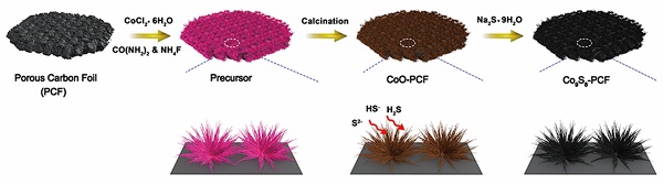图2. 剑麻状Co9S8氧电极的合成示意图