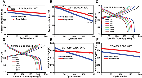 该工作证明了富含Ni的NMC阴极NMC76在4.5V的高充电电压下高度稳定,这项工作的主要发现为开发高能量密度,高充电截止电压(4.5 V)和下一代储能系统所需的高功率能力的高稳定性LMBs提供了新途径。