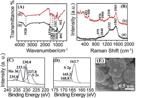 在这个工作中,作者通过离子交换的方法制备了四硫化钼修饰的聚吡咯材料。这种聚吡咯材料在强酸性的环境中,表现出对Ag+、Hg2+和Pb2+的高选择性清除。除此之外,MoS4-Ppy在弱酸和强酸性环境中都可以高选择性地分离Ag+和Cu2+。因为MoS4-Ppy很强的化学稳定性,与对酸敏感的LDH材料形成鲜明的对比,使其成为一种很好的水相重金属吸附材料。