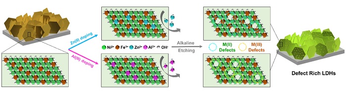 图1.NiFe LDHs引入M(II)及M(III)缺陷示意图