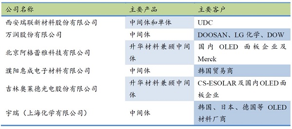 由于OLED产品一般为订单式生产,所以OLED材料行业最关键的能力为产品质量控制能力和研发快速响应能力。国内企业中,万润股份和西安瑞联技术实力最为雄厚,质量控制较好。吉林奥莱德具备较强的单体升华能力,而北京阿格蕾雅研发实力较强。在偏光片领域,三利谱、盛波光电等也开始为京东方、深天马、华星光电等面板企业小批量供货。随着OLED技术的不断成熟,世界各大面板巨头纷纷布局OLED发光材料这一核心技术。而国内OLED材料企业已从单一的市场定制逐渐走向多个系列产品自主研发的道路,在产品结构上从最初的基础中间体原料,逐渐发展到多种功能性高端材料,产品技术含量逐渐提高,研发与生产实力不断增强。