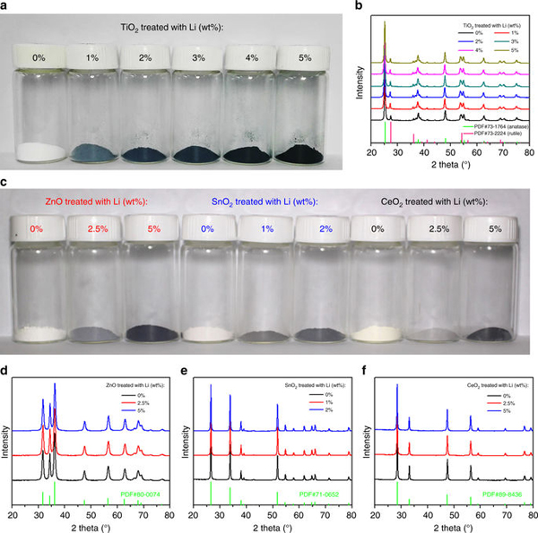 d,e.原始和5%Li处理的TiO2的高角度环形暗场(HAADF)图像。标尺:5nm。
