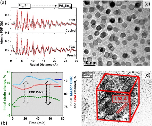 (a)未循环和循环的Pd-Sn纳米立方体的示例性纳米相分析;