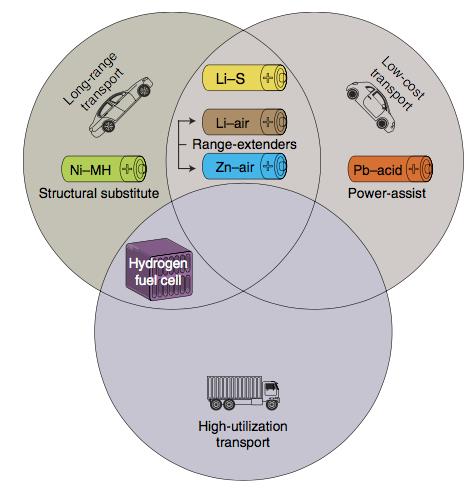 图4. 未来市场的可替代电池和燃料电池潜在适合领域