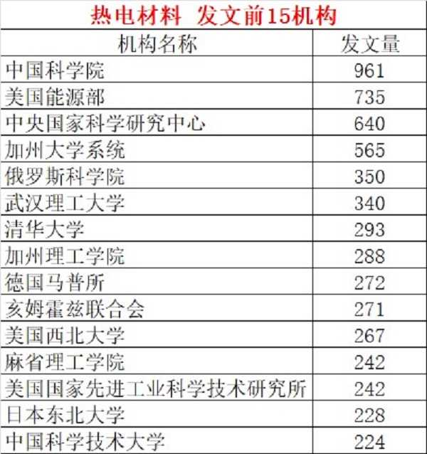 5、关于热电材料的专利发表情况