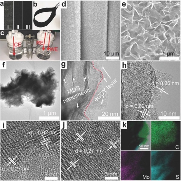 (h-j)eGDY/MDS不同倍数和位置的HRTEM;