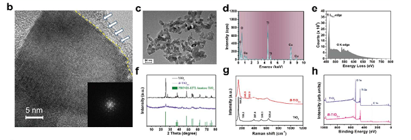 (f) TiO2 和B-TiO2-x的XRD图;