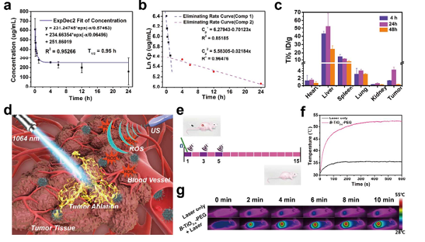 (a) 静脉注射B-TiO2-x-PEG后的血液循环曲线;