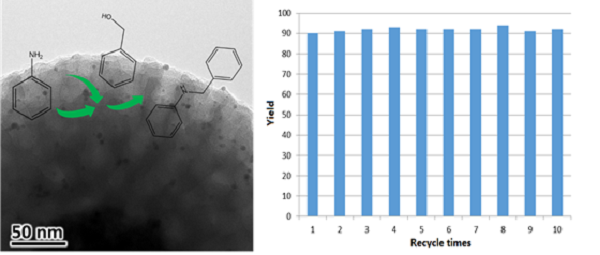 图4. CS-MMAS-Au 微球用于催化苯胺与苯甲醇N-烷基化偶联反应