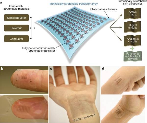 1. Nature:基于本征可拉伸晶体管阵列可扩展制备工艺的类皮肤电子器件