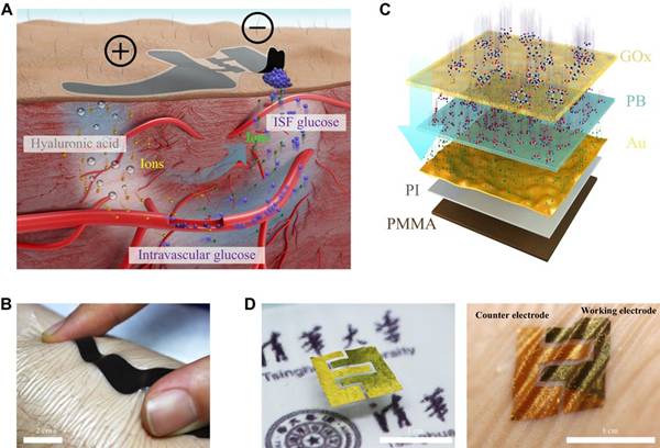 文献链接:Skin-like biosensor system via electrochemical channels for noninvasive blood glucose monitoring (Sci. Adv., 2017, DOI:10.1126/sciadv.1701629)
