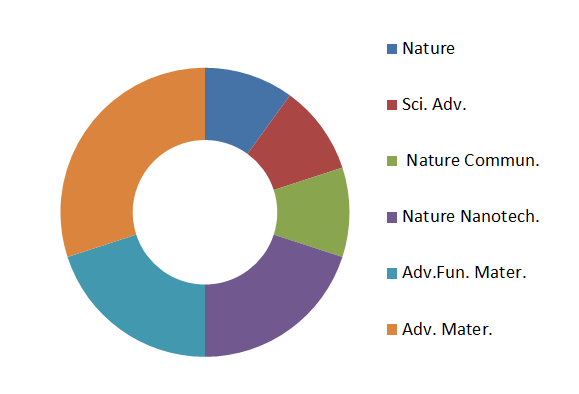 自然界中,生物体能对外界环境的刺激做出准确而迅速的响应,这是历经亿万年自然选择的结果,也是生命的重要特征。随着材料学科的发展以及对材料性能的需求逐步提高,人们期望人造材料能够对外界刺激做出一定程度的感知或反馈,即具有比拟生物体的环境响应性。因此,环境响应型材料可以定义为对外界物理或化学刺激,诸如温度、pH值、光场、电场、磁场、以及应力等的变化,其自身性质发生可逆改变的材料。然而传统环境响应材料主要为高分子材料,如水凝胶等,尚存在机械性能差、功能单一、响应速度慢等缺点,极大限制了其应用。近年来科学家尝试通过纳米技术提高环境响应材料的性能。 穿戴式传感器技术对于通过持续监测个人健康状况来实现个性化医学至关重要。生理信息可以进行非侵入性监测。以前报道的基于汗液和其他非侵入性生物传感器一次只能监测单个分析物,或者缺乏现场信号处理电路和传感器校准机制,以准确分析生理状态。汗液分泌的复杂性,目标生物标志物的同时和多重筛选是至关重要的,需要全面的系统整合以确保测量的准确性。提供机械灵活和完全集成(即不需要外部分析)传感器阵列,用于多次原位排汗分析,同时和选择性地测量汗液代谢物(如葡萄糖和乳酸)和电解质(如钠和钾)离子),以及皮肤温度(以校准传感器的响应)。通过将与皮肤接触的基于塑料的传感器与固定在柔性电路板上的硅集成电路相结合,实现复杂的信号处理,从而弥合了可穿戴式生物传感器中信号转导,调理(扩增和滤波),处理和无线传输之间的技术差距。由于它们各自的固有限制,本应用程序无法单独使用这些技术之一实现。穿戴式系统用于测量从事长时间室内和室外体力活动的人类受试者的详细汗水分布,并对受试者的生理状态进行实时评估。该平台能够进行广泛的个性化诊断和生理监测应用。因此,在追求高性能目标的同时,通过对其组分和结构设计赋予其环境响应的功能,并且进一步地实现多功能传感器件集成以构筑类智能复合传感检测系统。本文汇总了柔性物理或化学传感器10篇最新研究成果,包括Nature、 Nat. Nanotechnol.、Advanced Materials、Materials Today、 Sci. Adv.等顶级期刊,如图1所示。