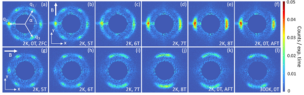 匈牙利布达佩斯工业和经济大学的S. Bordács(第一作者)发现室温多铁性BiFeO3单晶体的铁电畴,用小角中子衍射观察,可发生磁场诱导鳞状自旋结构重排。当超出钉扎阈值(~5T)磁场垂直于极化轴放置时,鳞状扩展矢量会发生旋转。鉴于以上实验结果,本文提出一个唯象模型,捕捉鳞状畴的重排,并再次讨论了磁电效应的微观起源。本文提出磁各向异性和极化之间一种新的耦合,用于解释最近发现的垂直于菱方轴向的磁电极化。