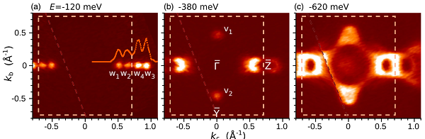 图3:平行于SnSe层的动量平面的角分辨光电子能谱密度分布图