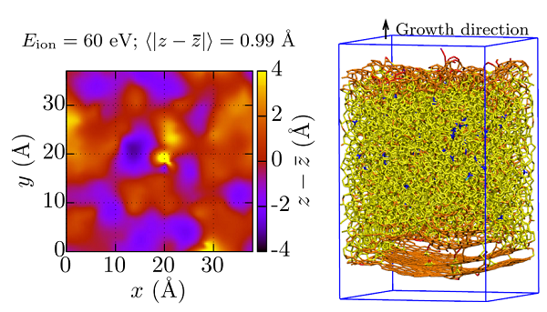 图7:60eV系统的表面粗糙度和原子层结构分析