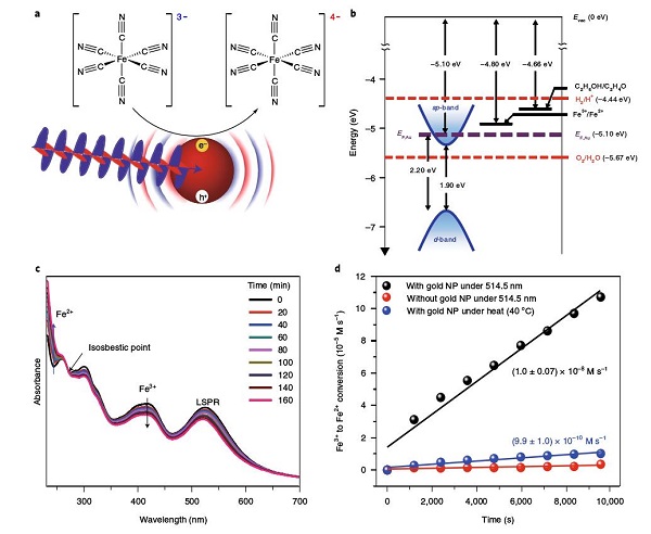 a: 包含金NP光催化剂和Fe 3+电子受体的实验模型系统;