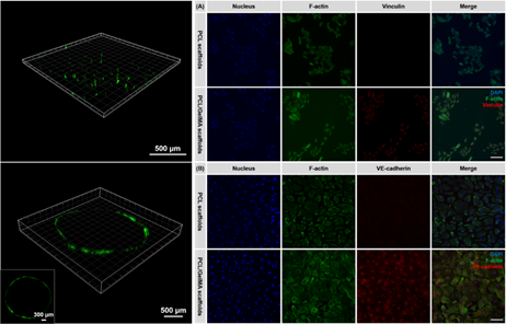 图 3 血管内皮细胞三维培养和内皮化