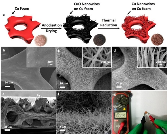 (a)CuNW-Cu的制备过程示意图及光学照片;