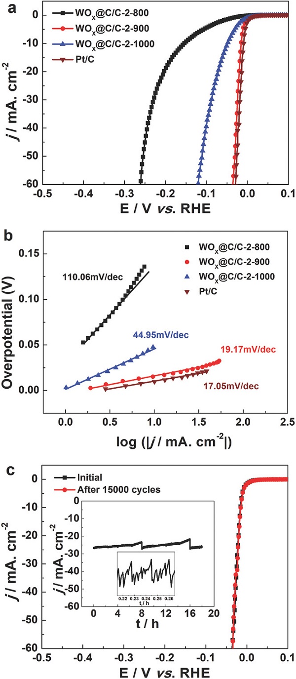 图3 WOx@C/C的电化学析氢性能