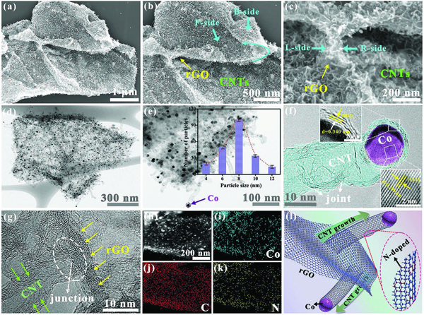 (l)为Co@N-CNTs@rGO复合材料的三明治状结构的示意图。