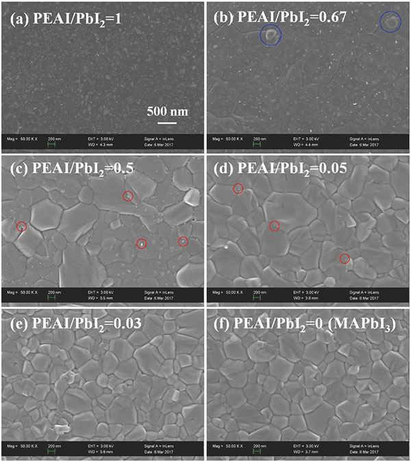 图4 PEAI掺杂的钙钛矿薄膜的SEM