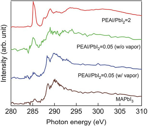 图6 PEAI掺杂的钙钛矿薄膜的近边X射线吸收精细结构(NEXAFS)谱