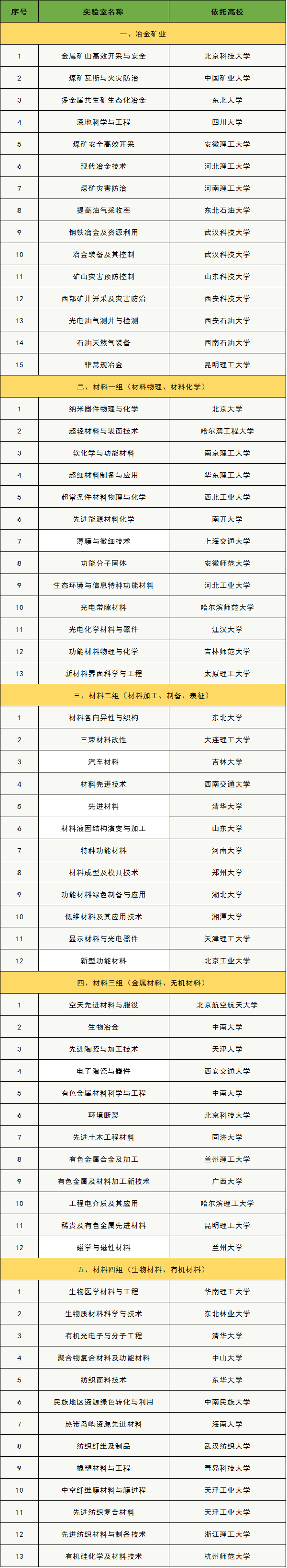 同国家重点实验室一样,依托于高等学校的教育部重点实验室每5年评估一次。2018年工程与材料领域教育部重点室迎来一轮评估。工程材料领域开放运行满3年的实验室均应参加定期评估,此次参加本年度评估的实验室145个,参评的材料方向实验室名单和初步分组情况如下图: