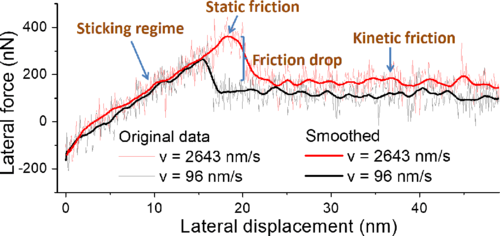 速率和状态摩擦(RSF)法则是广泛使用的描述宏观尺度到微观尺度摩擦行为的经验关系。最近的原子力显微镜(AFM)实验和模拟发现,由于形成界面化学键,几十年的接触时间内,纳米级单一的非均质无定形硅石-硅石接触表现出对数老化(随时间增加的摩擦力)。最近美国宾夕法尼亚大学Robert W. Carpick等人通过将热激活的Prandtl-Tomlinson(PTT)模型与基于化学老化物理学的进化效应相结合,为这种接触建立了基于物理的RSF关系。与PTT模型一样,这种具有化学老化(PTTCA)的热激活Prandtl-Tomlinson模型使用加载点速度来描述直接效应,而不是尖端速度(如传统的RSF定律)。他们提出了与PTTCA模型一致的AFM数据,在老化测试中,对于给定的保持时间,静摩擦随着加载点速度的对数增加。动力学摩擦也随着加载点速度的对数在足够高的速度下增加,但是以不同的增加速率增加。他们还为传统的RSF定律如何针对纳米级单一的粗糙度接触点进行了修改,从而为纳米级接触表现出化学键引发的老化以及具有相似物理特性的其他老化机制提供了基于物理的摩擦关系。