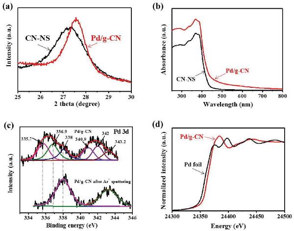 b) CN-NS和Pd/g-CN的紫外-可见漫反射光谱;