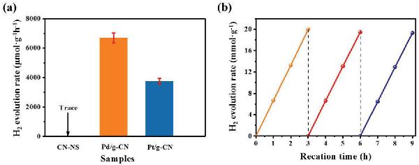 a) CN-NS、Pd/g-CN和Pt/g-CN的光催化制氢速率;