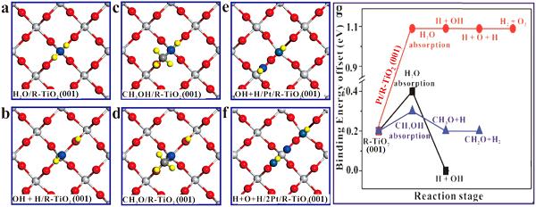 f) CH3O和H在R-TiO2(001)上的优化结构;