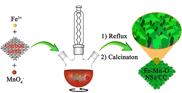 Fe-Mn-O NSs/CC的制备过程示意图。