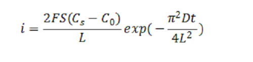 随后,维持充电电流恒定,使电势缓慢上升。这也是GITT名字中“恒电流”的来源。此时,电势E与时间t的关系需要使用菲克第二定律进行描述。菲克第一定律只适应于稳态扩散,即各处的扩散组元的浓度只随距离变化,而不随时间变化。实际上,大多数扩散过程都是在非稳态条件下进行的。对于非稳态扩散,就要应用菲克第二定律了。