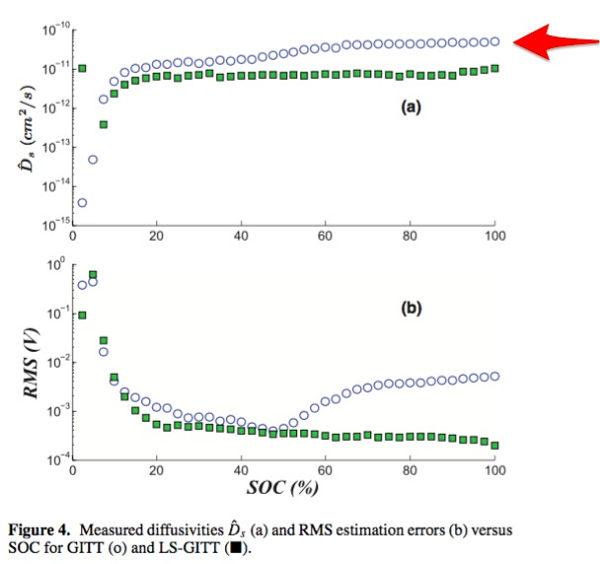 对于商用的锂离子电池进行一次典型的PITT测试(数据来源[3])。