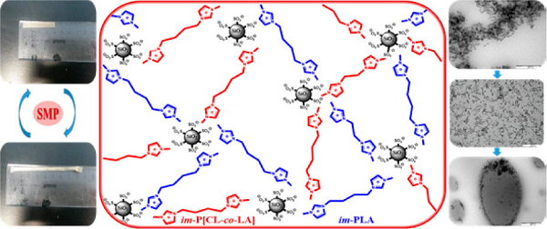 聚乳酸(PLA)是一种可降解、生物兼容性强的聚合物,具有良好的热机械性能,被广泛应用于生物、自动化和电子器件中。Philippe Dubios教授课题组尝试将表面改性的硅纳米粒子分散在聚乳酸基质中,两者通过静电作用结合,可获得固定性达100%和恢复率达79%的形状记忆材料。