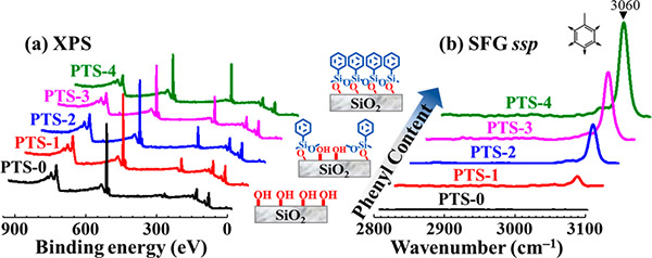 (b) 具有不同苯基含量的PTS修饰基底的SFG谱图。