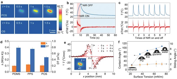 图2. POS的光热和浸润表征