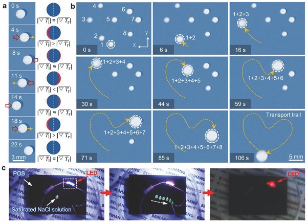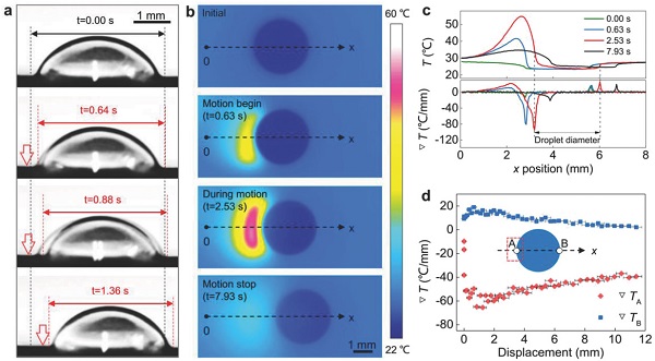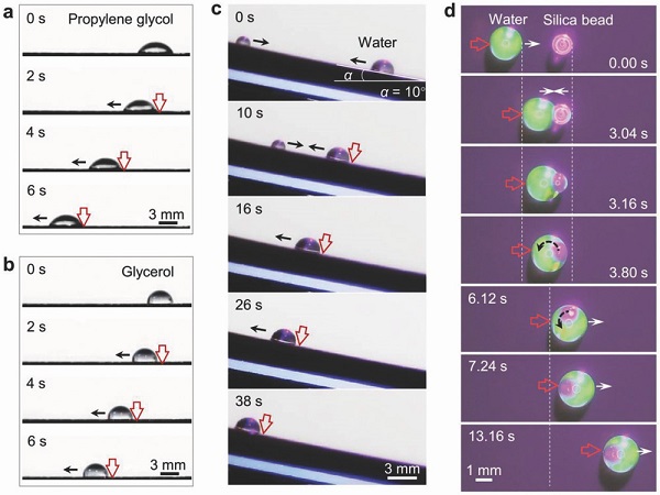 (a).水滴在水平POS上光诱导可逆运动的时间序列图像