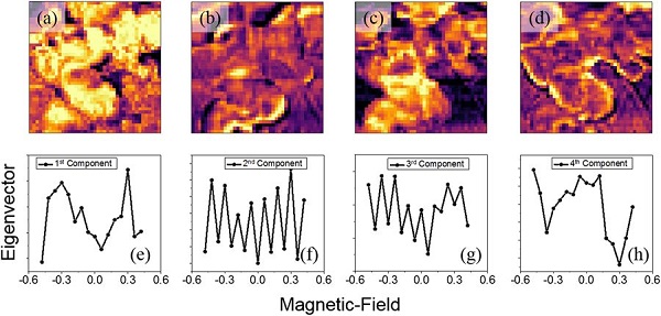 近日,德国杜伊斯堡–埃森大学Vladimir V. Shvartsman和Harsh Trivedi等研究人员通过利用可变磁场压电响应力显微镜(PFM)研究了多铁复合材料。由于实验限制,其中压电响应的磁场依赖性只能得到粗调步长的测量数据。而从该数据中有效地提取出上述与局域磁电效应相关的磁场依赖性是该研究要解决的核心问题。研究人员通过利用密度聚类方法在数据中预先标记出可能的模式,然后针对主成分分析(PCA)作为一种简单的非监督学习技术的表现进行评估。他们以这种组合分析为基础,从而着重研究了在上述案例中,如何使用基于非中心二次矩的PCA,才能提取出有关局域材料响应及其空间分布的信息。该研究发表于npj Computational Materials,题为“Sequential piezoresponse force microscopy and the ‘small-data’ problem”。