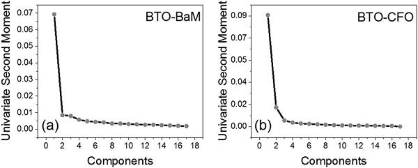 (a)和(b)分别对应于BTO-BaM和BTO-CFO的力矩与组分曲线,显示了组分中非中心单变量矩的递减顺序。